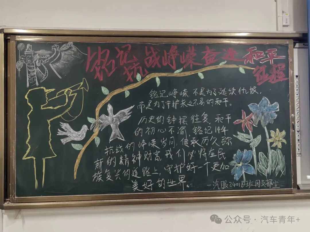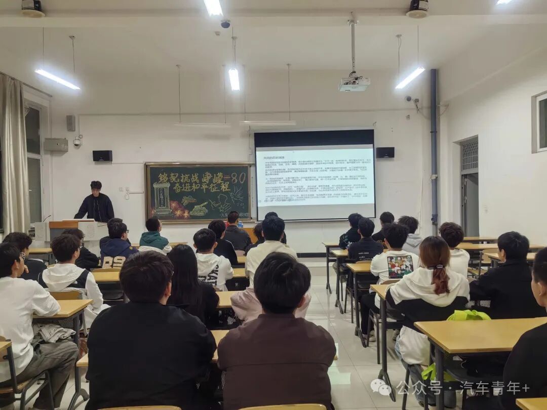 9月25日,汽车工程学院各班开展了以“铭记抗战峥嵘,奋进和平征程”为主题的主题团课。本次团课聚焦抗战历史与和平建设,以弘扬伟大抗战精神、铸牢中华民族共同体意识为核心导向,旨在引导同学们铭记革命先辈的峥嵘岁月,传承爱国精神,以青年担当续写和平发展新篇章。