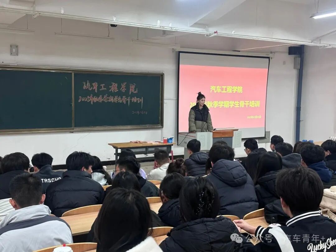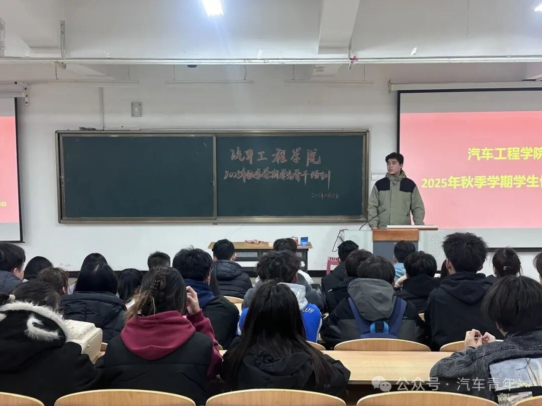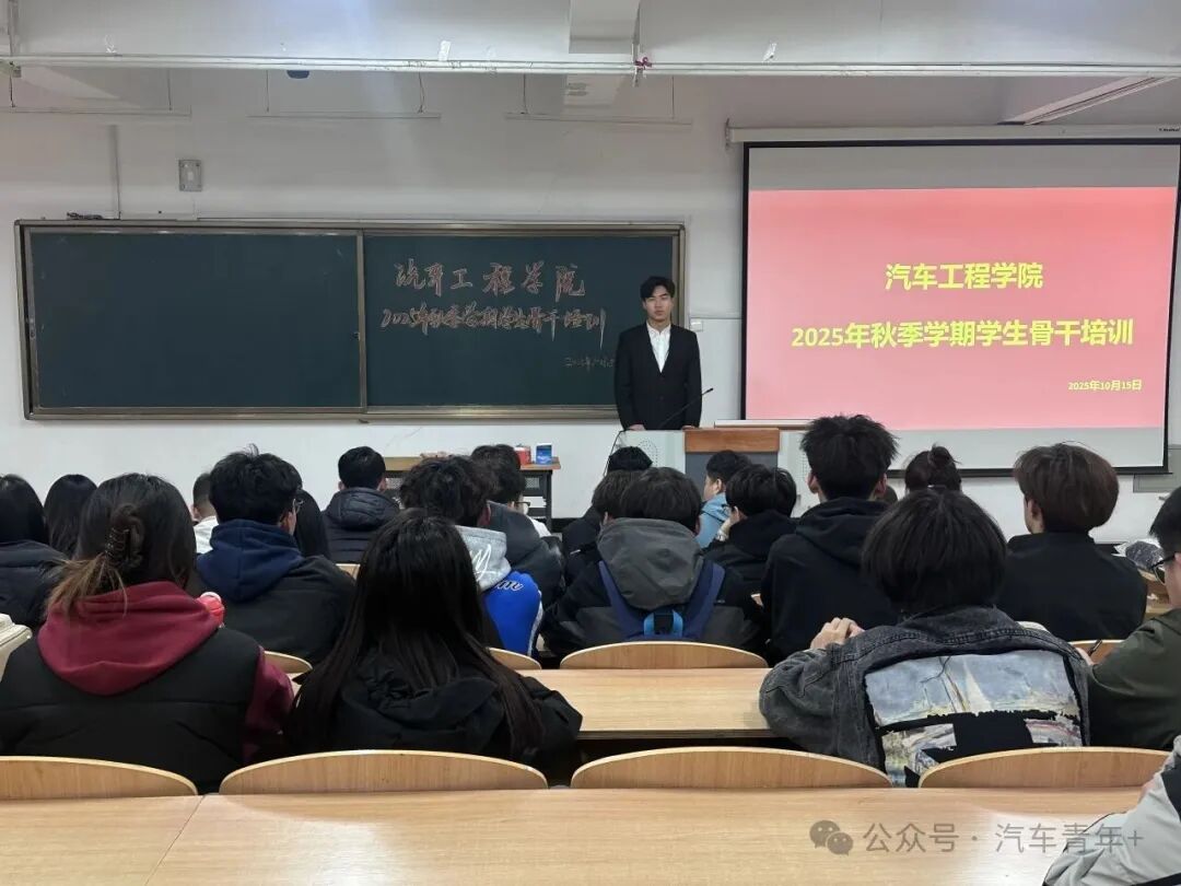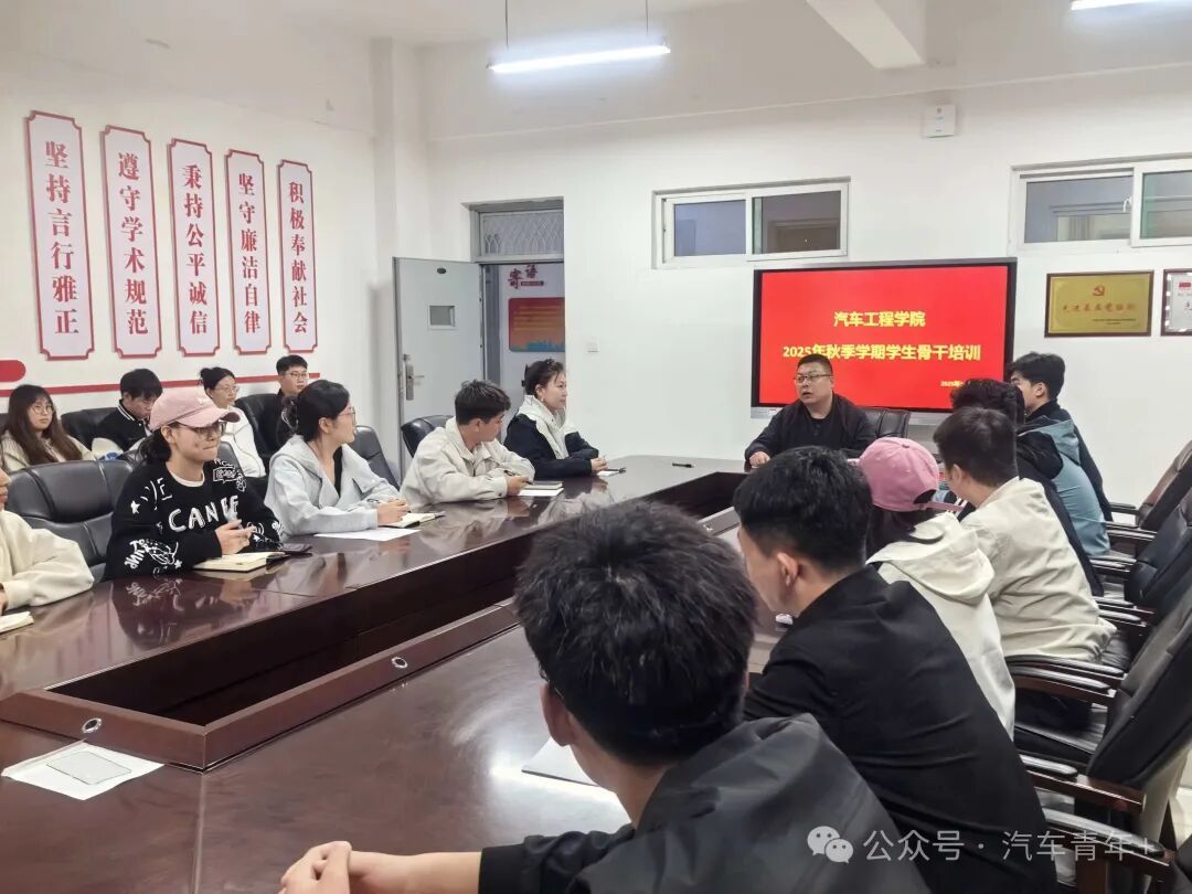 10月23日,汽车工程学院2025年秋季学期学生骨干培训在11号教学楼T19教室顺利开展。此前,为确保培训精准对接学院学生工作需求、明确核心培训方向,团委书记闫宇主持召开预备会议,对培训流程、内容重点及预期目标进行统筹部署。此次培训旨在提升学生骨干综合能力,明确各学生组织职能定位,凝聚学生工作合力,学院学生会执行主席王轲瑶、学生兼职分团委副书记高亚鹏、主席团成员任帅及全体学生骨干参与其中。