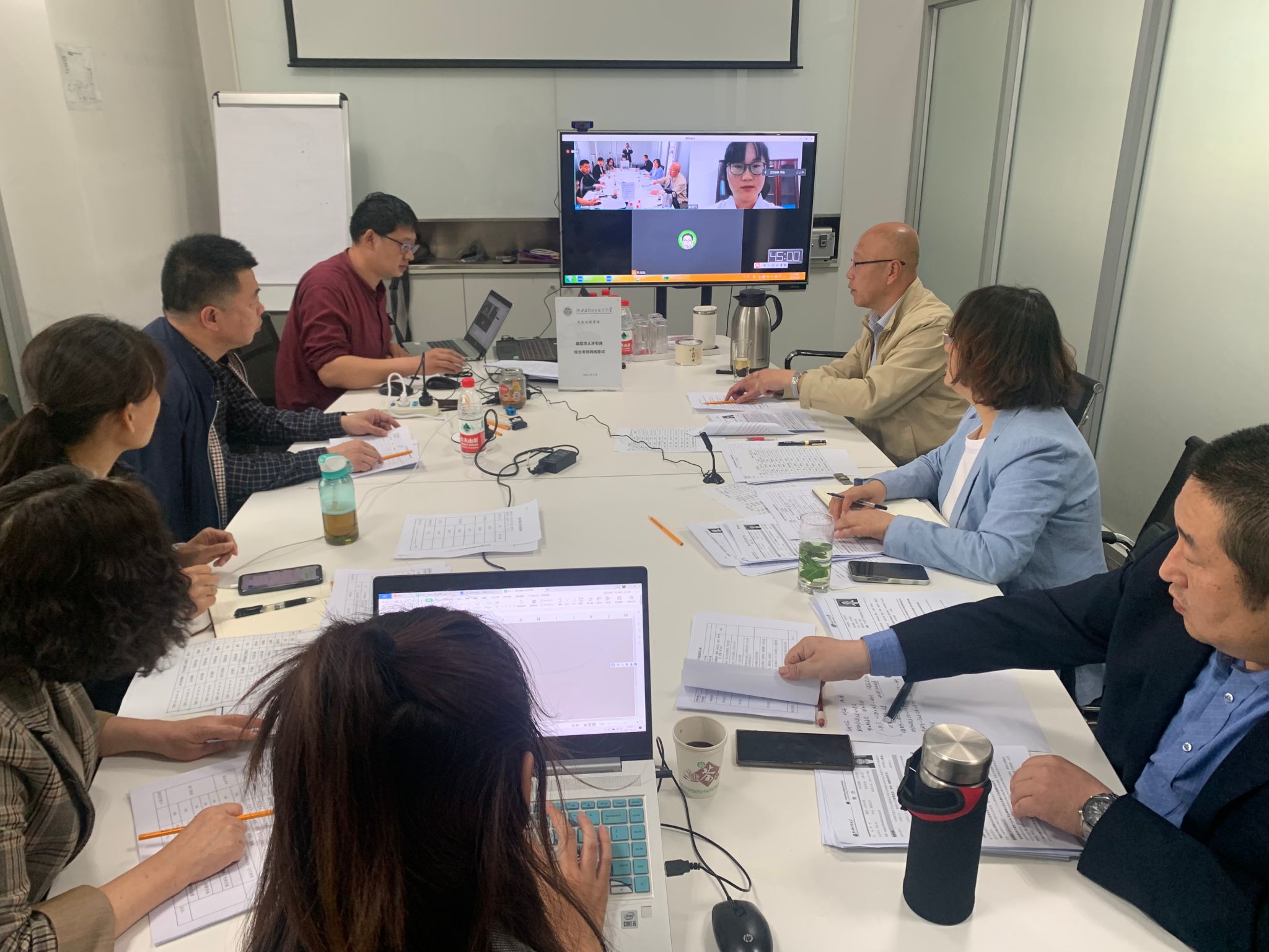 考核采用自我介绍、科研介绍、专家提问、课程试讲等环节进行。考核过程中,应聘人员逐一进入腾讯会议网络面试室,介绍个人情况、学习工作经历,科研与实践经历,畅谈未来工作设想。现场专家从思想政治素质、身心健康、教育教学能力、科研能力、专业素养、求职动机等多方面进行提问,对应聘人员的综合素质及专业水平进行全面考核。根据招聘岗位要求和应聘人员现场答辩整体表现,秉承实事求是、公平公正原则,分别为应聘人员的综合表现打分,确保考核结果的客观公正性。