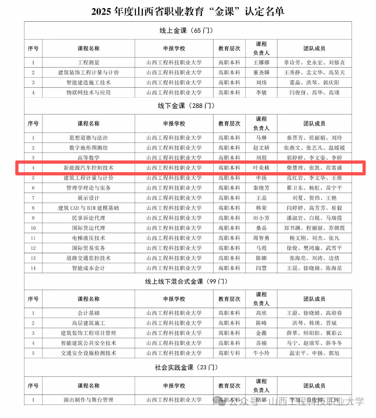 近日,省教育厅发布了《山西省教育厅关于公布2025年山西省职业教育“金课”名单的通知》,我院<新能源汽车控制技术>课程成功获评省级职教“金课”。